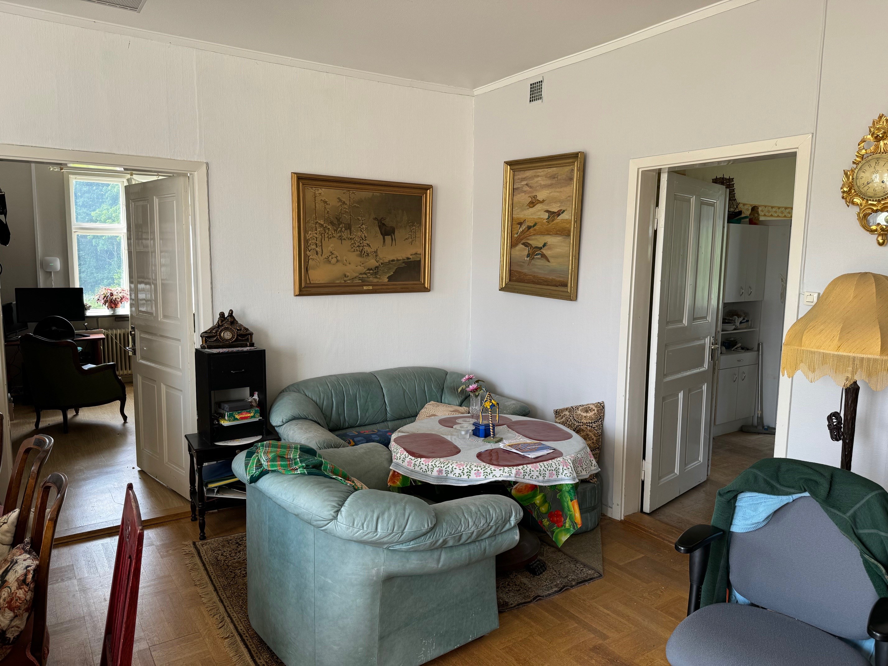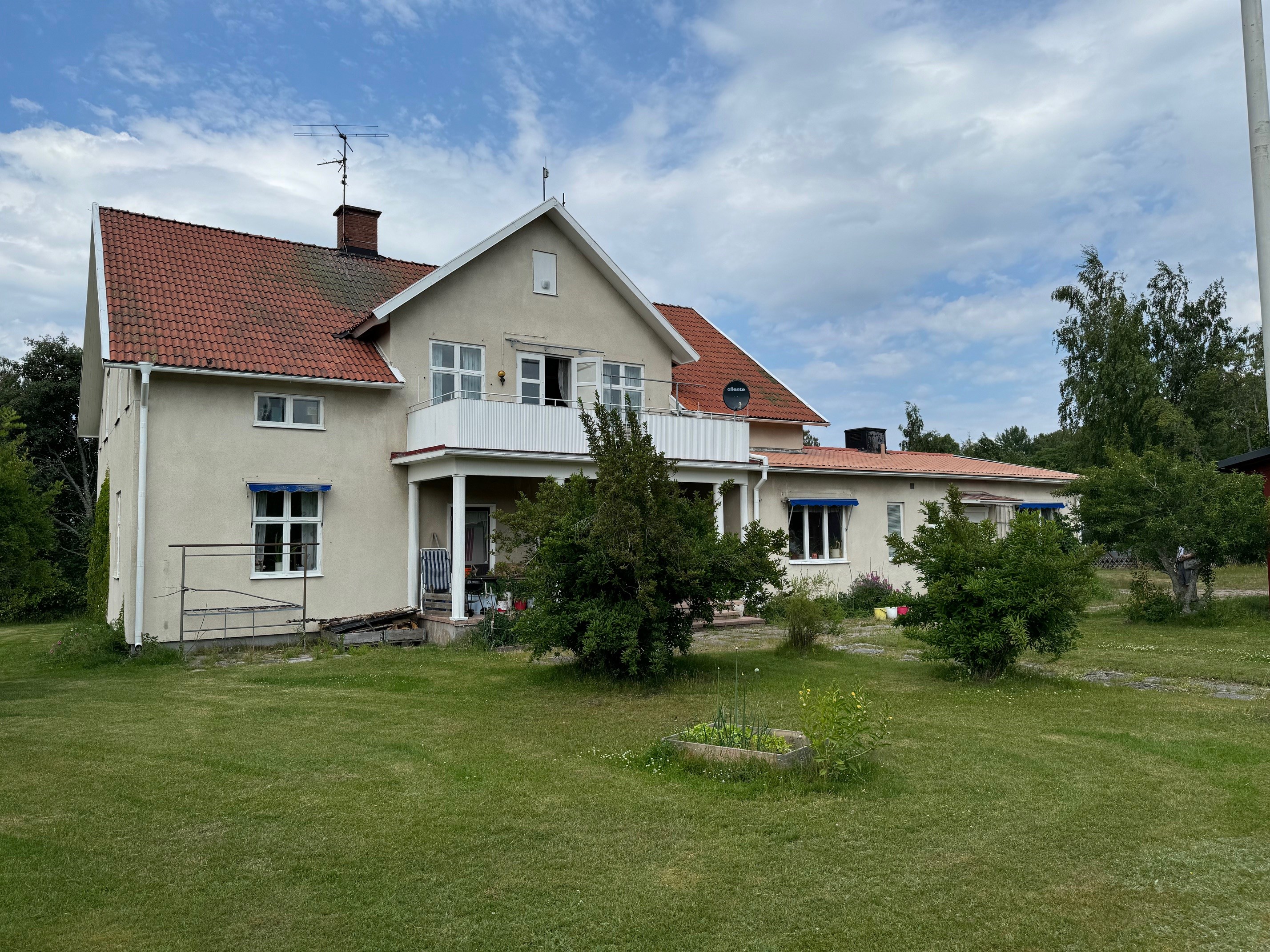 STORT FAMILJE "RESIDENS" MED UTVECKLINGSMÖJLIGHETER. Villa i Gullspång 400 m² boyta och 250 m² biyta med totalt 15 rum, två pentry och två kök. Stor renovering utförd 2022-2023. Nedervåning: Huvudentré, hall, trapp till övervåning, två stora vardagsrum, äldre kök, utgång till baksidan, entré med hall, totalt nio rum och två kök, badrum med dusch. Ytterligare tre WC med tvättställ. Övervåning: Totalt sex rum varav fyra sovrum, fyra klädkammare, fint vardagsrum med stor balkong, allrum med pentry och balkong med stege från bottenplan. Badrum med WC och tvättställ. Källare: Tvättstuga, pannrum med bergvärme, bastu, dusch, förråd, matkällare. Verkstadsdelen med nedfart i källaren c:a 50 m² Nybyggt dubbel garage, med elportar, gjutet golv med golvbrunn, dränerat. Ny ELBilsladdare 3 fas 22 kw. Nybyggd carport byggd i trä med plåttak. Vedbod. Bergvärme. Solcellsanläggning, 16 stora solpaneler, batteri 9, 6 kwh för natttaxa och uppladdning. Fiber med WIFI i hela huset. Larm i två delar. ”Möjlighet, på denna stora tomt, bygga ett Annex eller stycka av med ca 1600 kvm tomt för en friastående villa med egen infart fr Järnvägsgatan. Carport o förråd att ingå där. Finns då även möjlighet till egen väg genom tomtens ö sida: Bergsgatan – Järnvägsgatan."