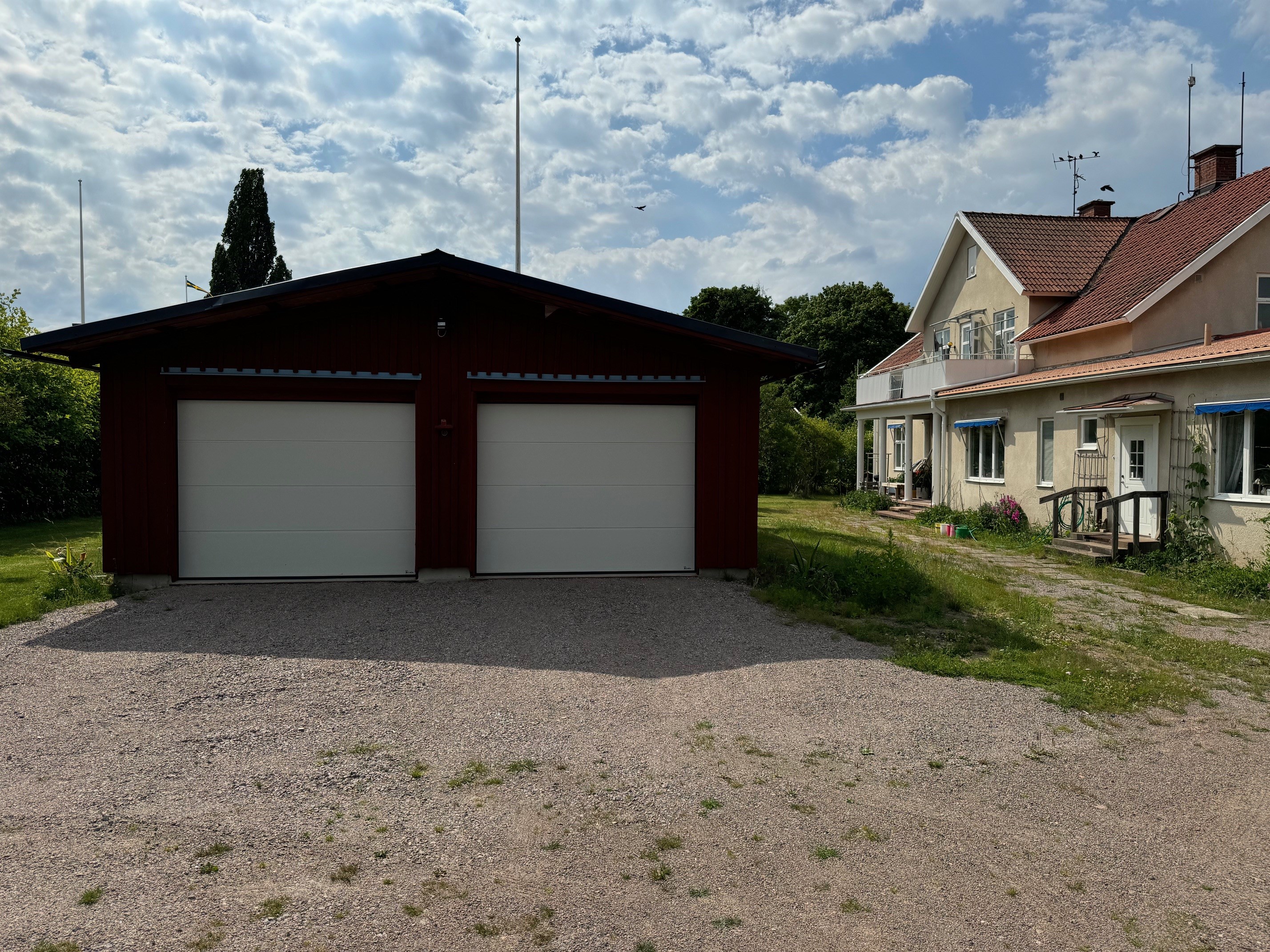 Nybyggt dubbelgarage, carport