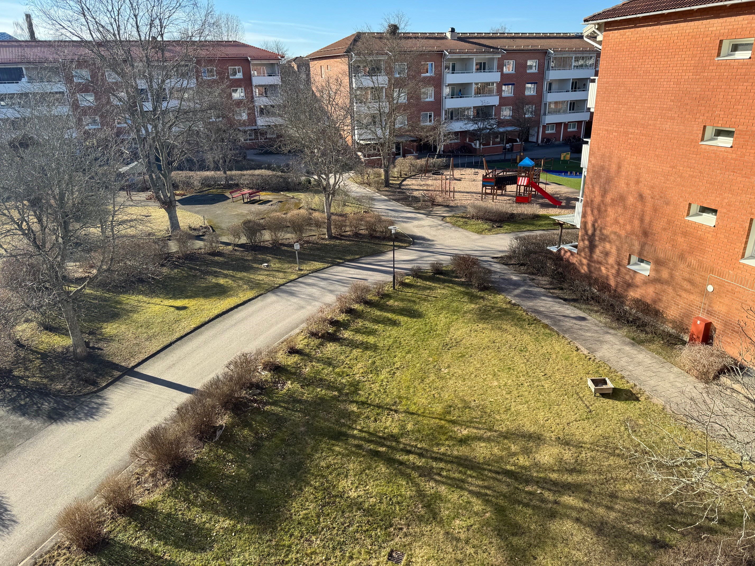 Varmt välkommen till denna hemtrevliga och välplanerade bostadsrätt med 2 rok belägen i Mariestad. Här bor du i en stabil förening med grönskande innergård, lekplats och trevliga promenadstråk precis utanför dörren och samtidigt bekvämt avstånd till service. Entré & hall Bostaden nås via en välskött trappuppgång. Väl inne möts du av en ljus och funktionell hall med generösa förvaringsmöjligheter. Här finns ett praktiskt första intryck som binder samman bostadens olika delar. Kök & matplats Köket är praktiskt och smakfullt utformat med goda arbetsytor, stilrena luckor och bra förvaring. Diskmaskin, kyl och frys. I anslutning finns en matplats med utgång till balkongen – perfekt för både vardagsmiddagar och sociala tillfällen. Vardagsrum Vidare in i bostaden finner du ett rymligt vardagsrum med stora fönsterpartier som bidrar till fint ljusinsläpp och plats för både soffgrupp och övrigt möblemang. Här finns en ombonad känsla med moderna ytskikt som ger ett stilrent helhetsintryck. Den stilfulla fondväggen i trä ger rummet karaktär och skapar en varm, modern känsla. Sovrum Sovrummet är rogivande med plats för dubbelsäng och kompletterande möbler. Här erbjuds ett lugnt läge med utsikt mot grönska, vilket skapar en harmonisk miljö för vila och återhämtning. Badrum Badrummet är funktionellt utrustat med dusch, tvättställ och tvättmaskin. Balkong Från köket nås en trevlig balkong med plats för sittgrupp. Här kan du njuta av utsikt över området och den lugna innergården. Område Här bor du i ett barnvänligt och trivsamt område med fina grönytor, lekplats och gångvägar. Närhet till service, skolor och kommunikationer gör detta till ett bekvämt boende för både singel, par eller mindre familj. Sammanfattning: Välplanerad bostadsrätt Stilrent kök med matplats Balkong med trevligt läge Ljus och trivsam interiör Lugnt och grönt område med lekplats